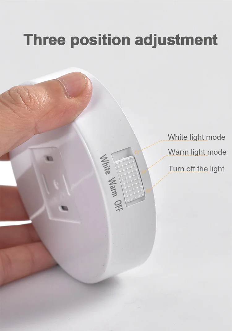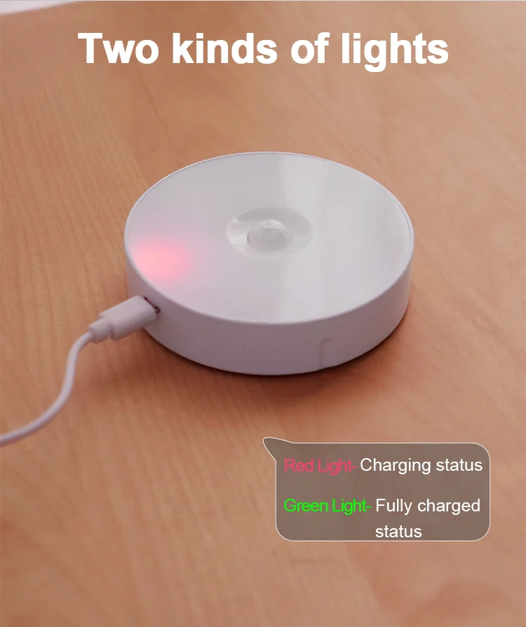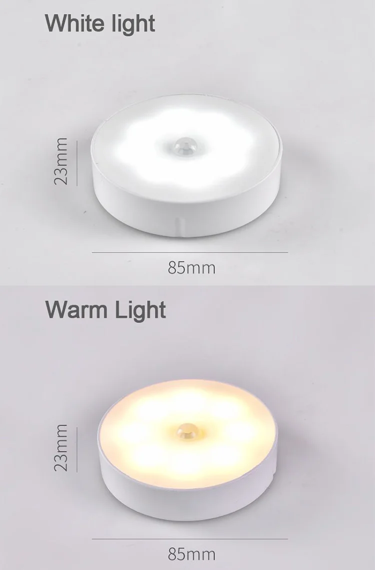 Compacta (85x20mm) e leve (60g), possui design redondo e discreto, com 8 LEDs de luz branca quente (3000K) ou fria (6000K). A bateria de 500mAh recarregável via USB elimina a necessidade de pilhas extras – uma carga dura até 40 dias em uso automático.